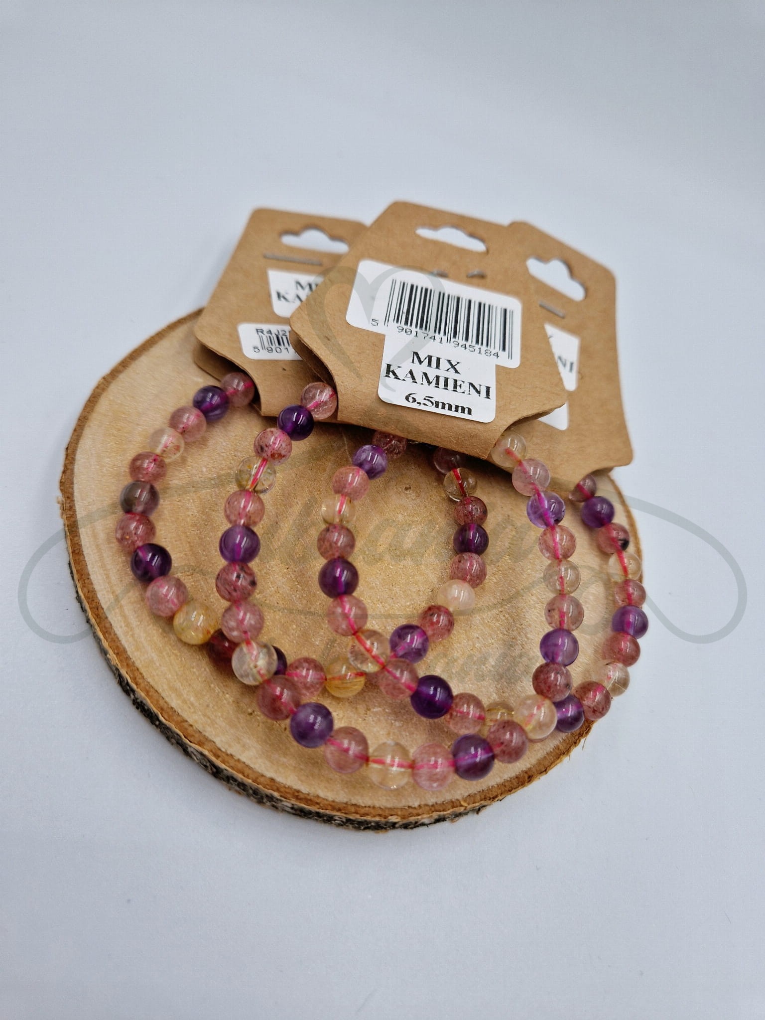 Bransoletka z trzech różnych kamieni szlachetnych: Cytryn, Ametyst i Kwarc truskawkowy. Bransoletka jest na gumce dzięki czemu będzie pasować na każdy nadgarstek.