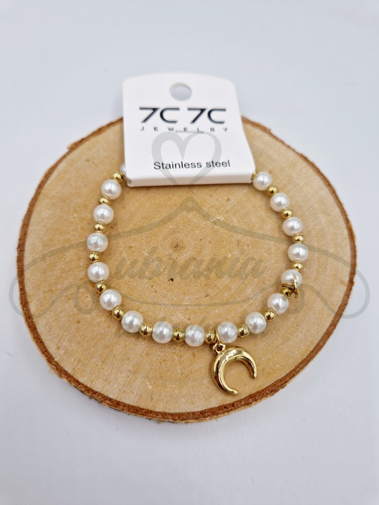 Subtelna i kobieca bransoletka na elastycznej gumce, wykonana z białych perełek oraz złotych kuleczek ze stali szlachetnej. Całość zdobi zawieszka w kształcie złotego półksiężyca, która dodaje biżuterii mistycznego uroku. Bransoletka jest lekka, wygodna w noszeniu i nie uczula. Idealna zarówno na co dzień, jak i na wyjątkowe okazje – doskonale uzupełni romantyczne i eleganckie stylizacje.