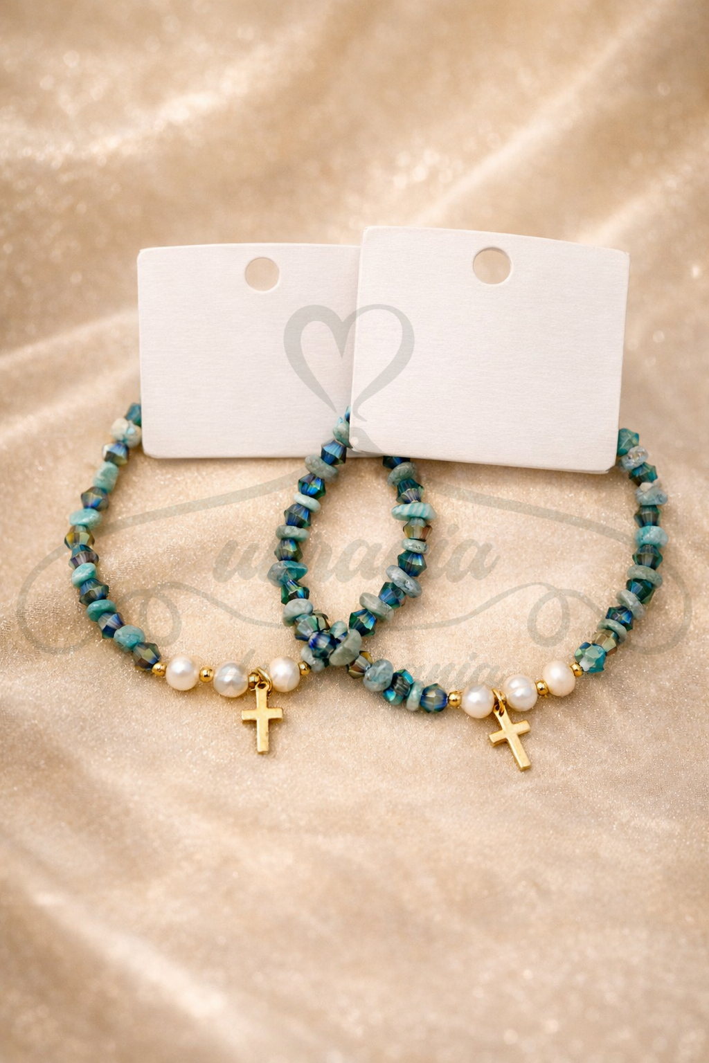 Delikatna i pełna znaczenia – bransoletka z naturalnych kamieni, pereł i złotego krzyżyka. Wykonana na bazie stali szlachetnej, zachwyca nie tylko wyglądem, ale też trwałością. Idealna dla osób ceniących biżuterię symboliczną i stylową zarazem.