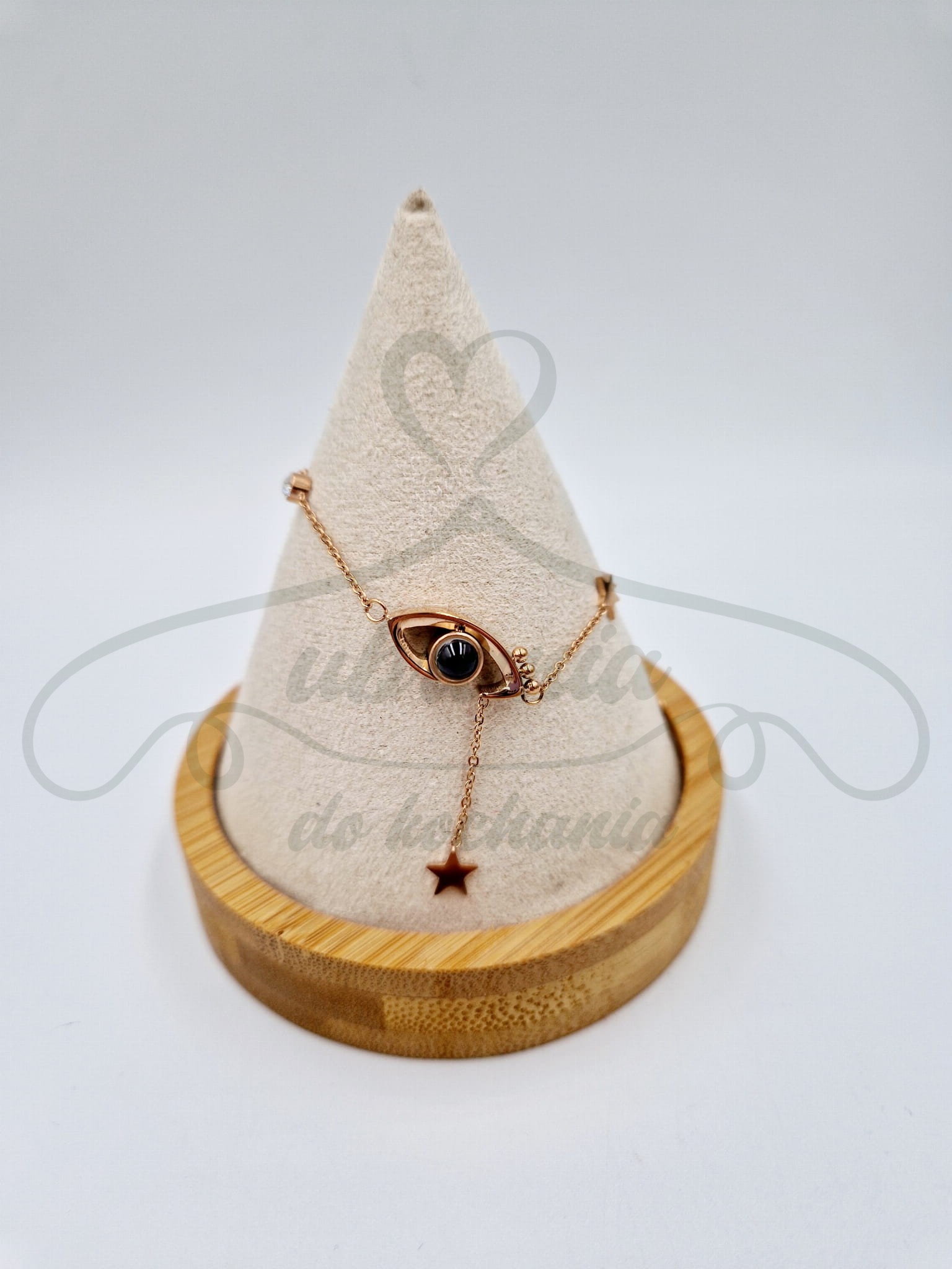 Bransoletka w kolorze czerwonego złota, oko z cyrkoniami oraz gwiazdką. Model ze stali szlachetnej.
