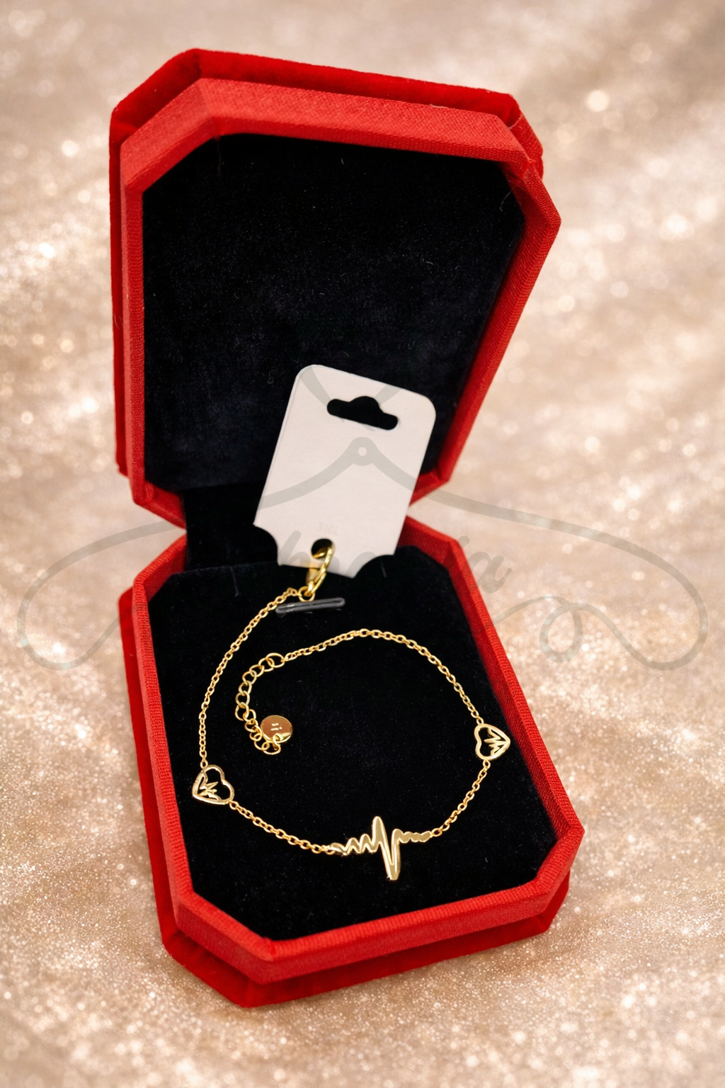Śliczna bransoletka w kolorze złotym o nietypowym motywie pulsu bijącego serca, będzie niezwykłym dodatkiem do codziennych stylizacji. Osoby, które noszą taką biżuterię, mogą w ten sposób pokazać swoje umiłowanie życia i dbałość o to, by każdy kolejny dzień był niezwykły. Bransoletka ta nadaje się również jako prezent dla osoby, której życzymy jak najlepiej.