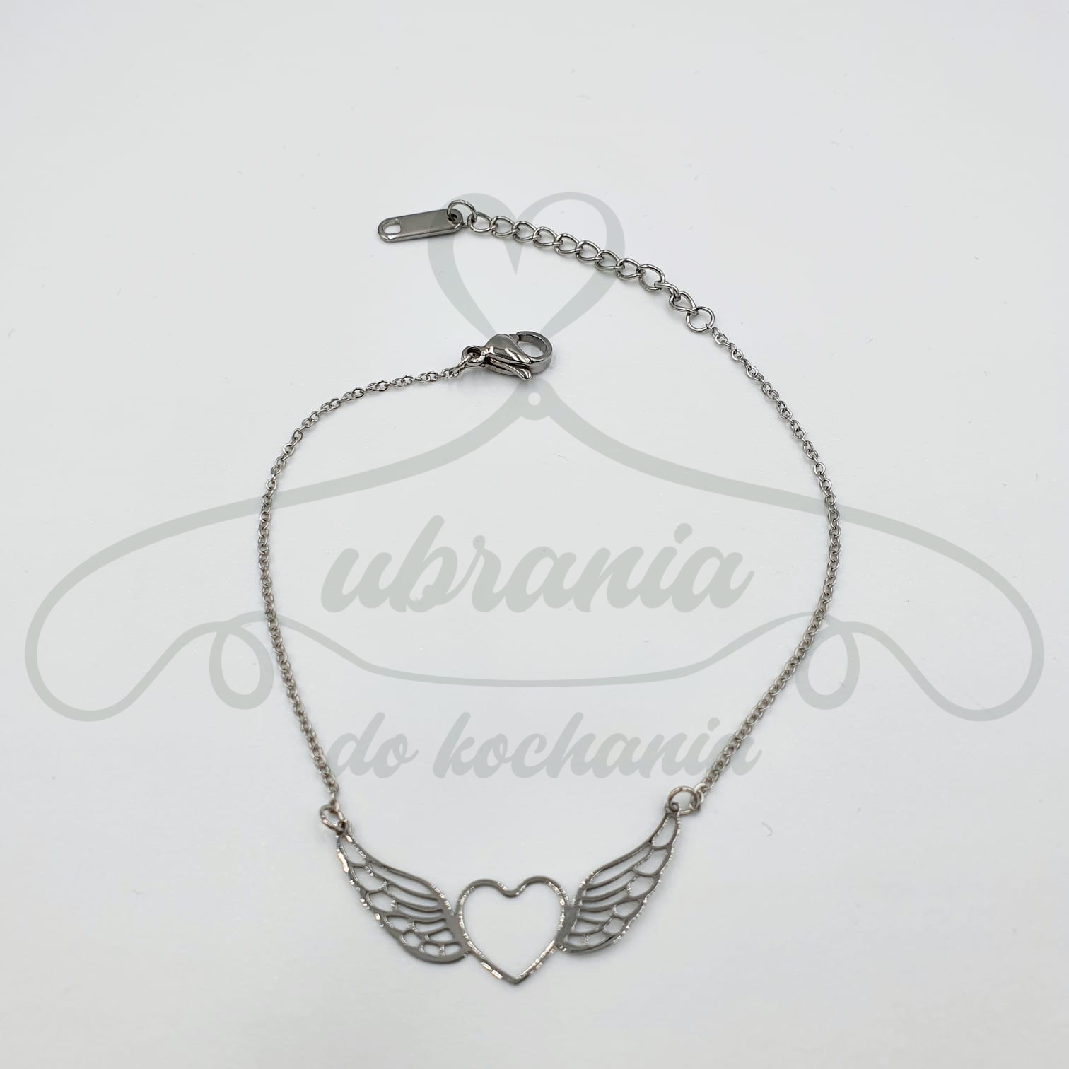 Bransoletka serce ze skrzydłami w kolorze srebrnym, wykonana z wysokiej jakości stali chirurgicznej 316L.