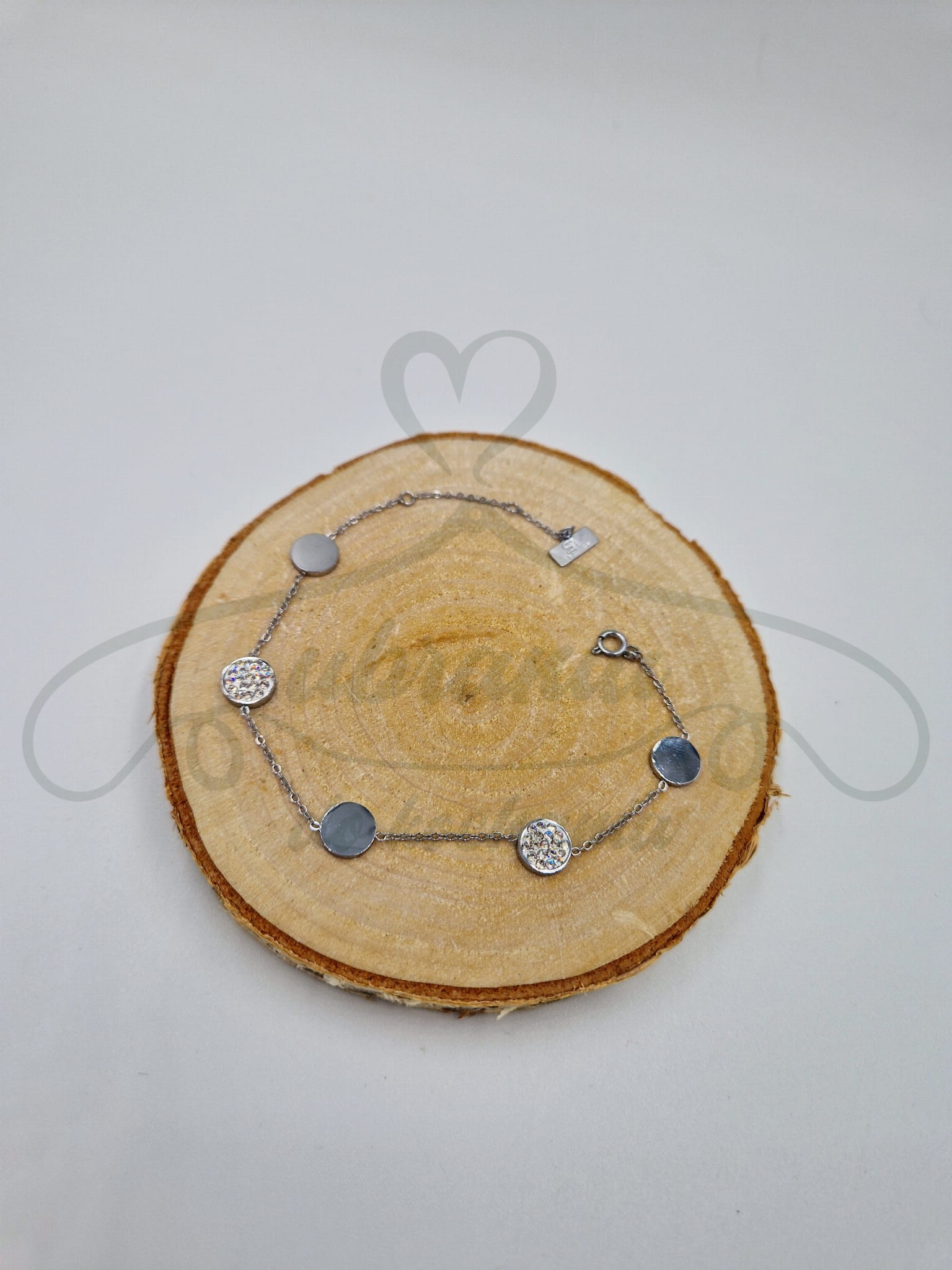 Bransoletka w kolorze srebrnym z kółeczkami oraz cyrkoniami. Wykonana z wysokiej jakości stali szlachetnej 316 L