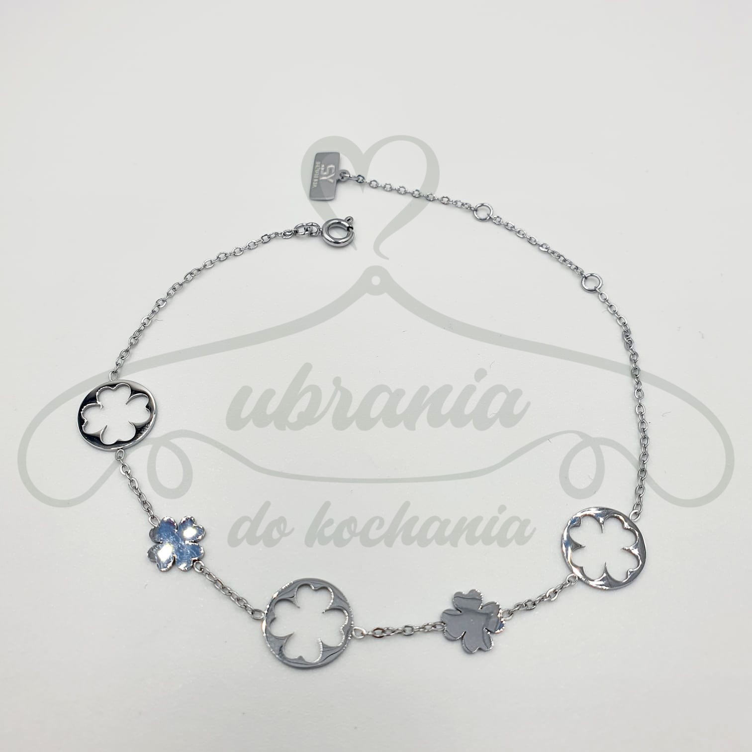 Bransoletka z zawieszkami w kształcie koniczyny w kolorze srebrnym wykonana ze stali chirurgicznej 316L.