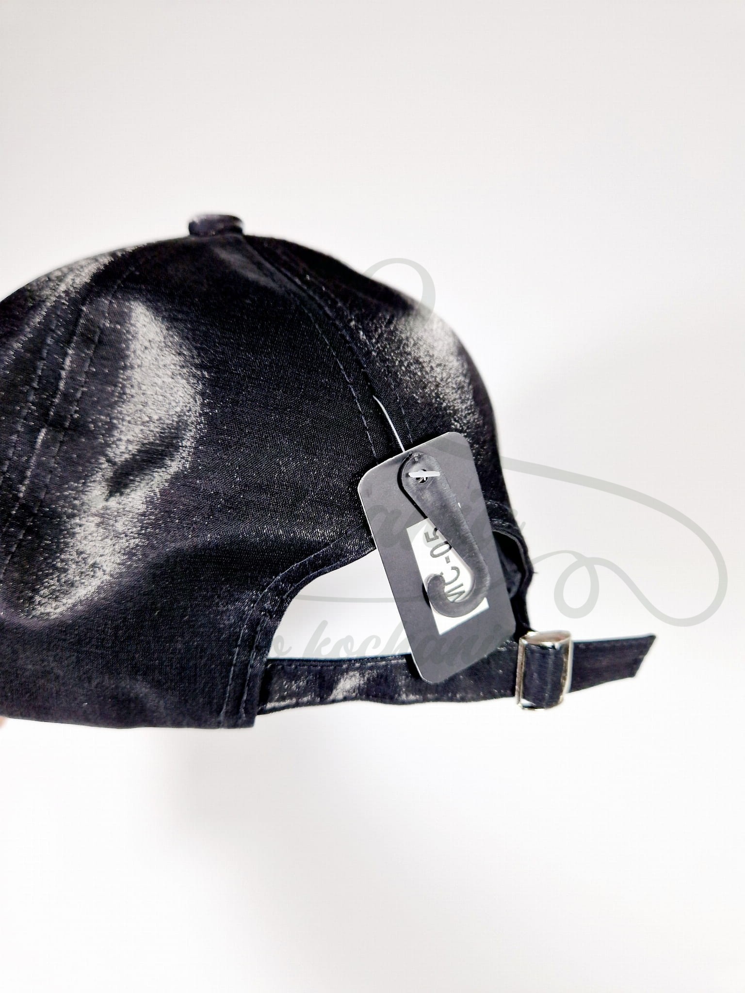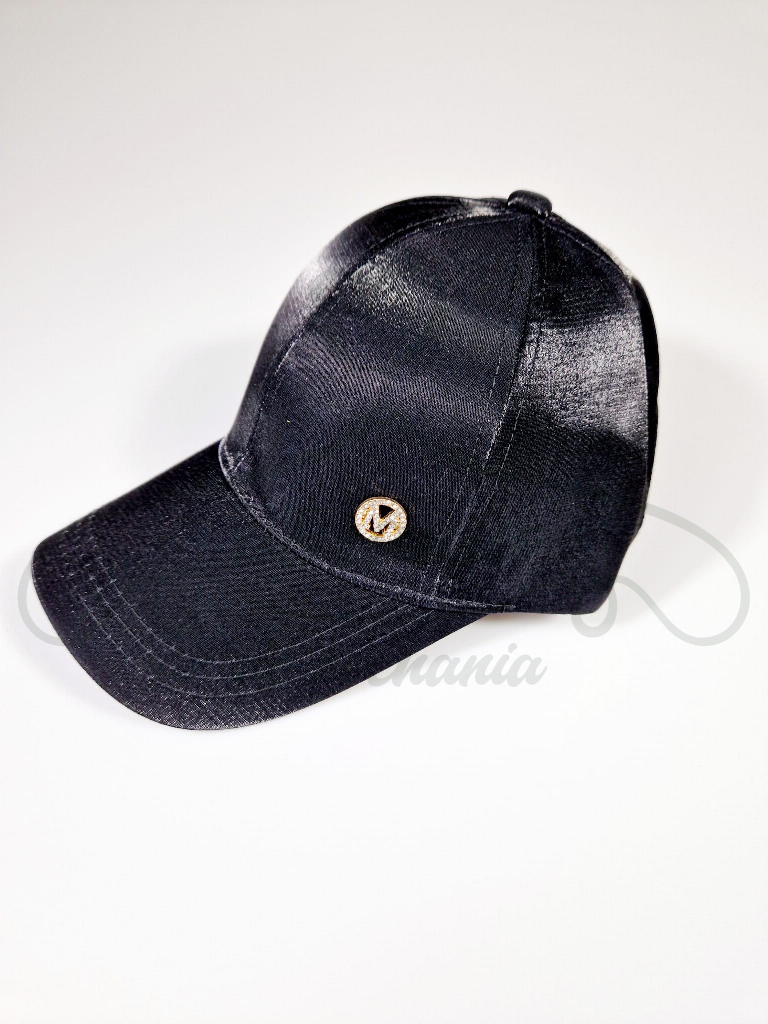 Czapka z daszkiem damska w kolorze czarnym z cyrkonią na przodzie, posiada regulację z tyłu.
