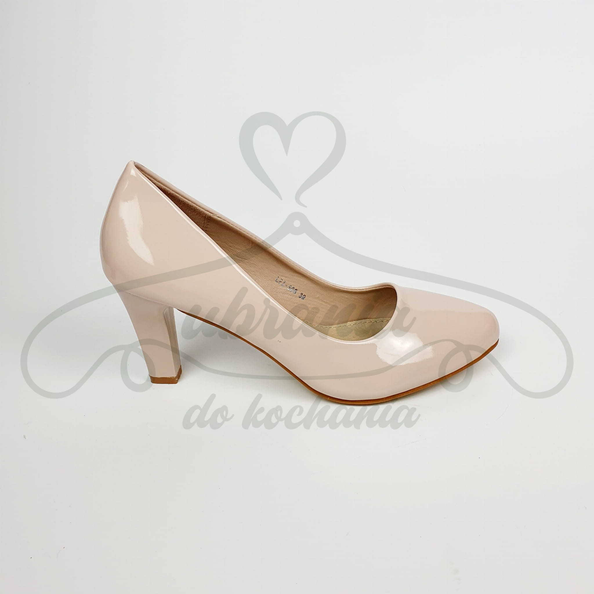 Czółenka damskie, beżowe lakierowane z zaokrąglonym noskiem. Buty na komfortowym i wygodnym obcasie o wysokości 8cm. Idealnie uzupełnią każda elegancką stylizacje.