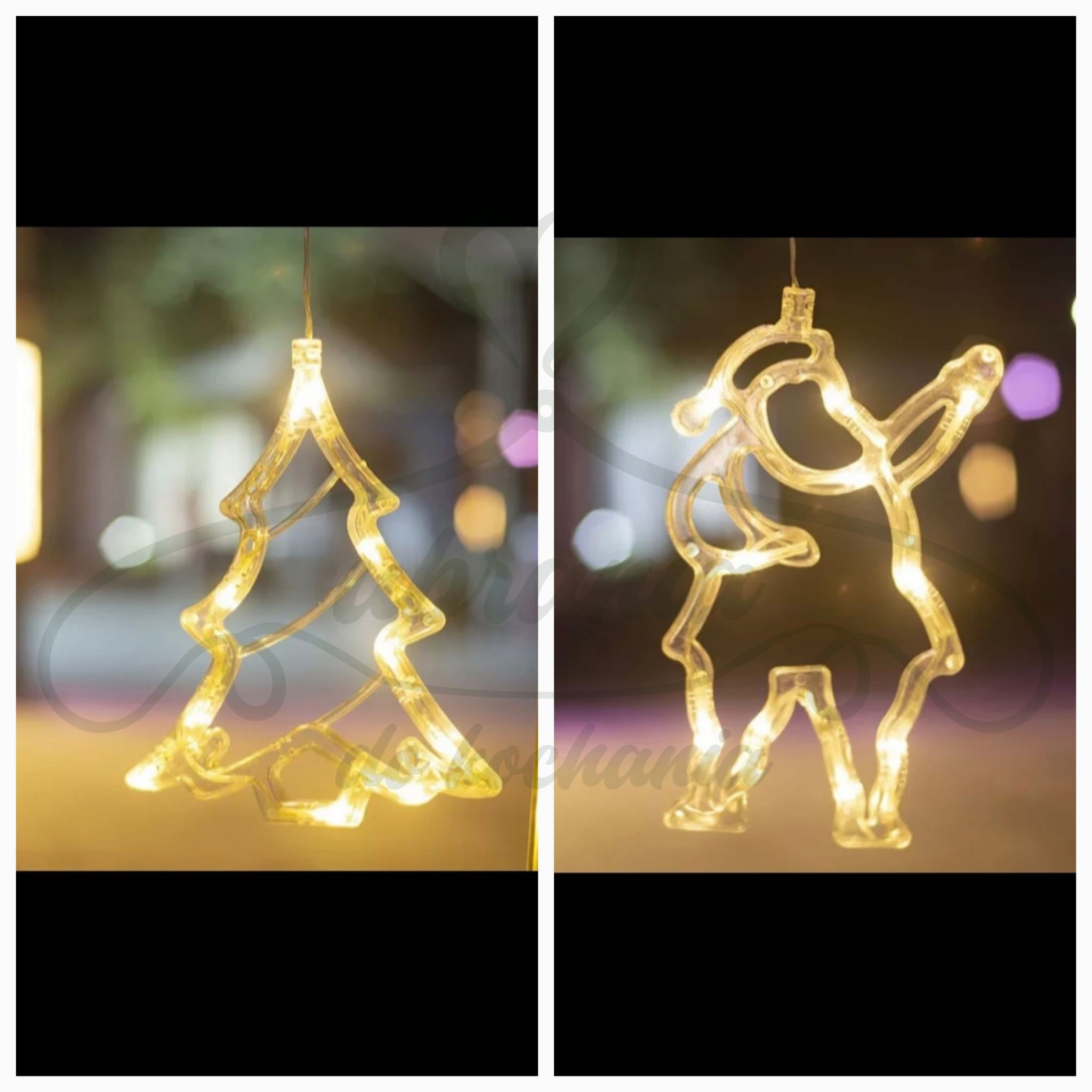 Kurtyna świetlna złożona z pionowych zwisających przewodów na których umieszczone są diody mikro LED z choinkami i Mikołajem. Lampki zostały umieszczone na wytrzymałym, grubym kablu, co gwarantuje długą żywotność. Dzięki technologii LED lampki nie pobierają dużo prądu. Delikatnie kołyszące się w oknie wprowadzą magiczny klimat do naszego domu.