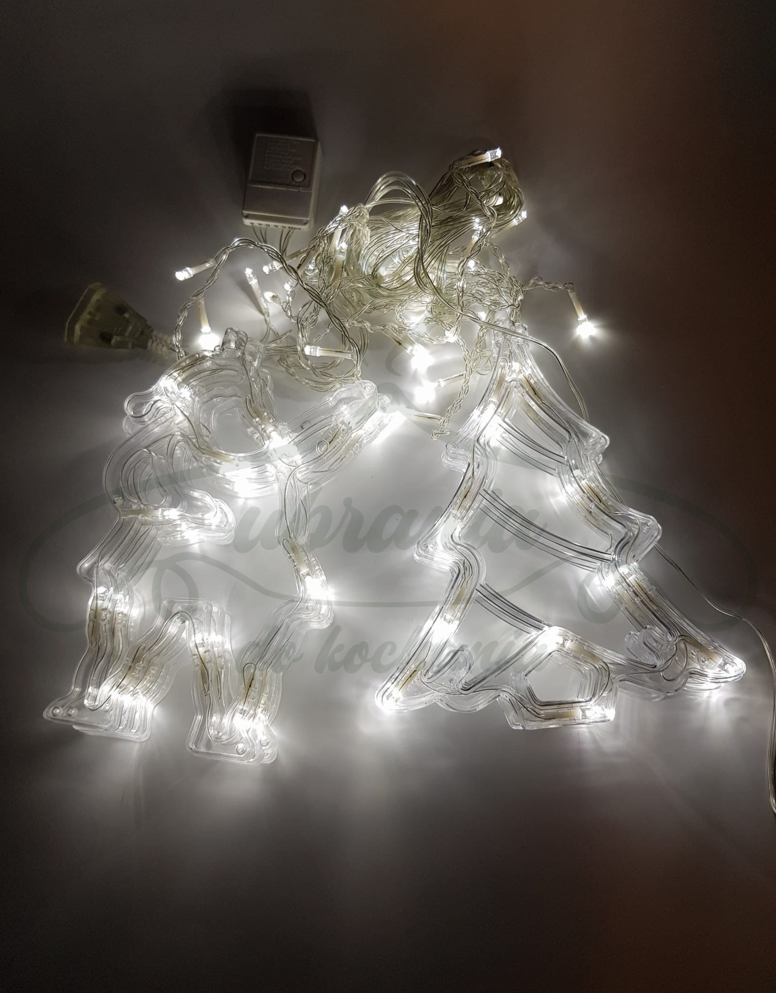 KURTYNA ŚWIETLNA LED choinka i Mikołaj, ZIMNY