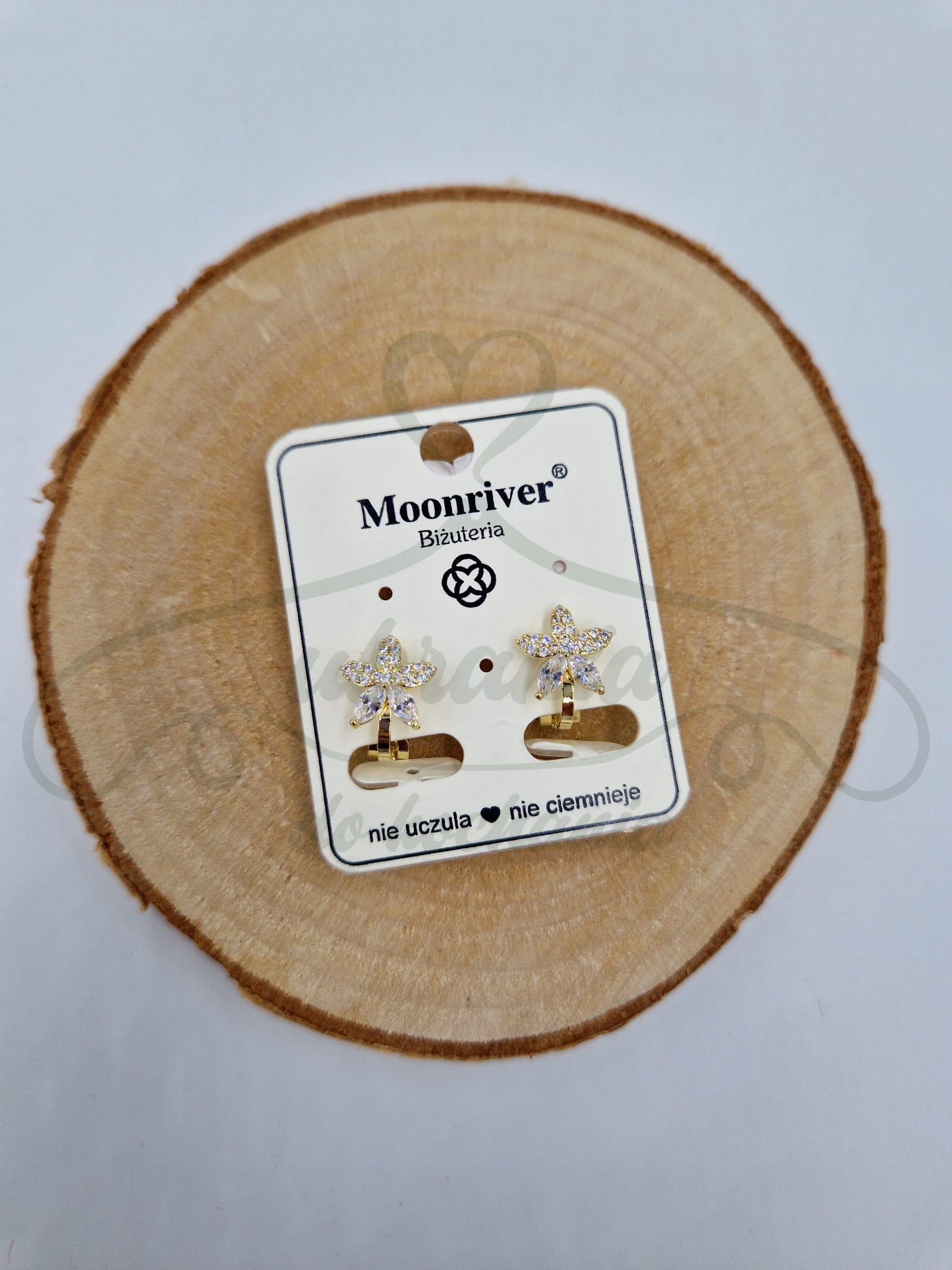 Subtelne i efektowne klipsy w kształcie kwiatka, wykonane ze stali szlachetnej w złotym odcieniu. Każde ramię ozdobione jest połyskującymi cyrkoniami, które dodają blasku i elegancji.