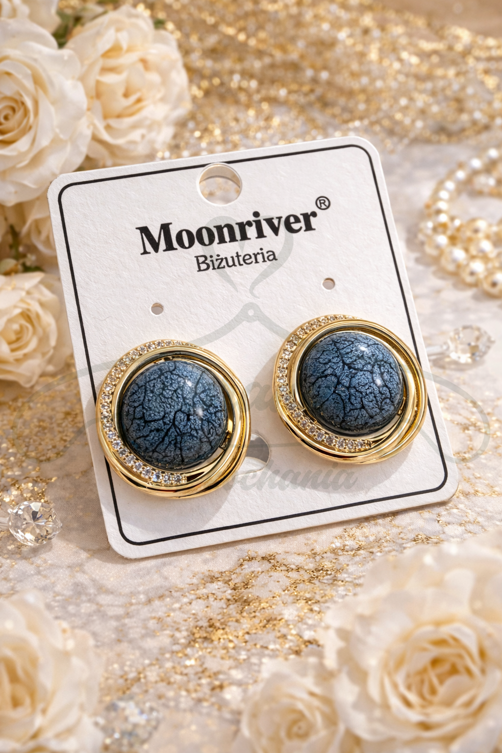 Piękne klipsy o wyjątkowym wyglądzie niebiesko-szarych kul, okrążonych złotym pierścieniem z cyrkoniami to oryginalny dodatek do każdej, codziennej stylizacji. Spodobają się szczególnie kobietom, które lubią nietypową biżuterię. Klasa, szyk i absolutny must have w szkatułce!