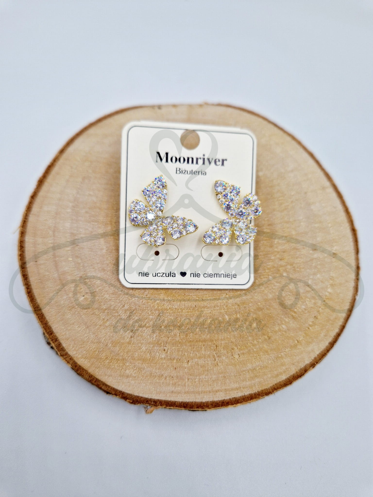 Przepiękne kolczyki w kształcie motyli bogato zdobione cyrkoniami to biżuteria stworzona dla marzycielek, które lubią się wyróżniać. Ich wygląd przywołuje na myśl piękne chwile na łące pełnej kwiatów i delikatnych motyli. Biżuteria ta pasuje do każdej kreacji, jak również będzie oryginalnym pomysłem na prezent dla najbliższej osoby.