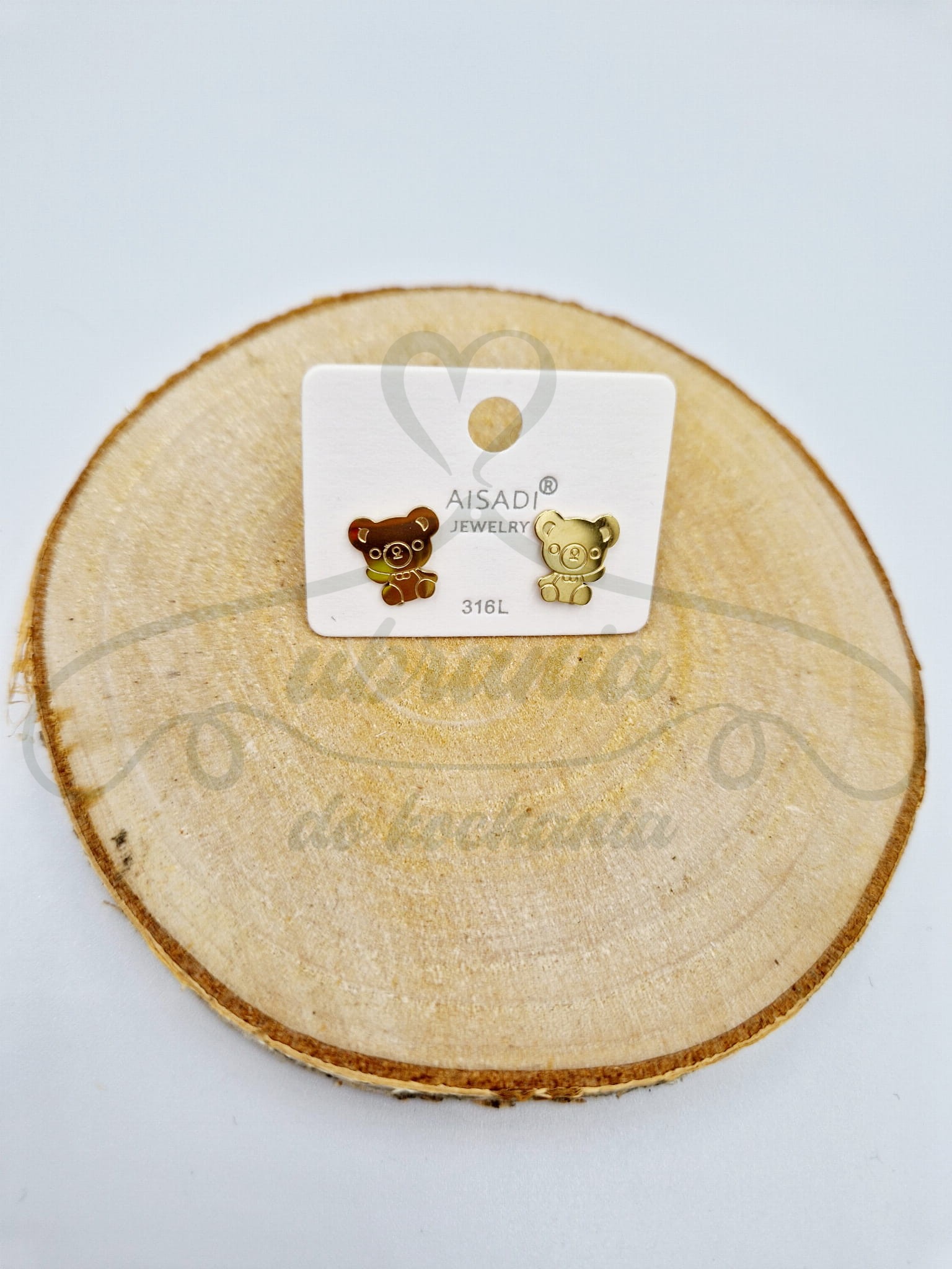 Kolczyki dla dziewczynek w kolorze złotym- misie zapinane na wkrętki. Cudowne wzory i wysokiej jakości delikatne kolczyki są idealnym prezentem dla małych księżniczek! Pierwsze kolczyki dla dziewczynek zawsze powinny być ze stali chirurgicznej, która jest bezpieczna - nie uczula! Biżuteria jest antyalergiczna. Swój blask i kolor zachowa przez długi czas!! Cudowna jakość wykonania.