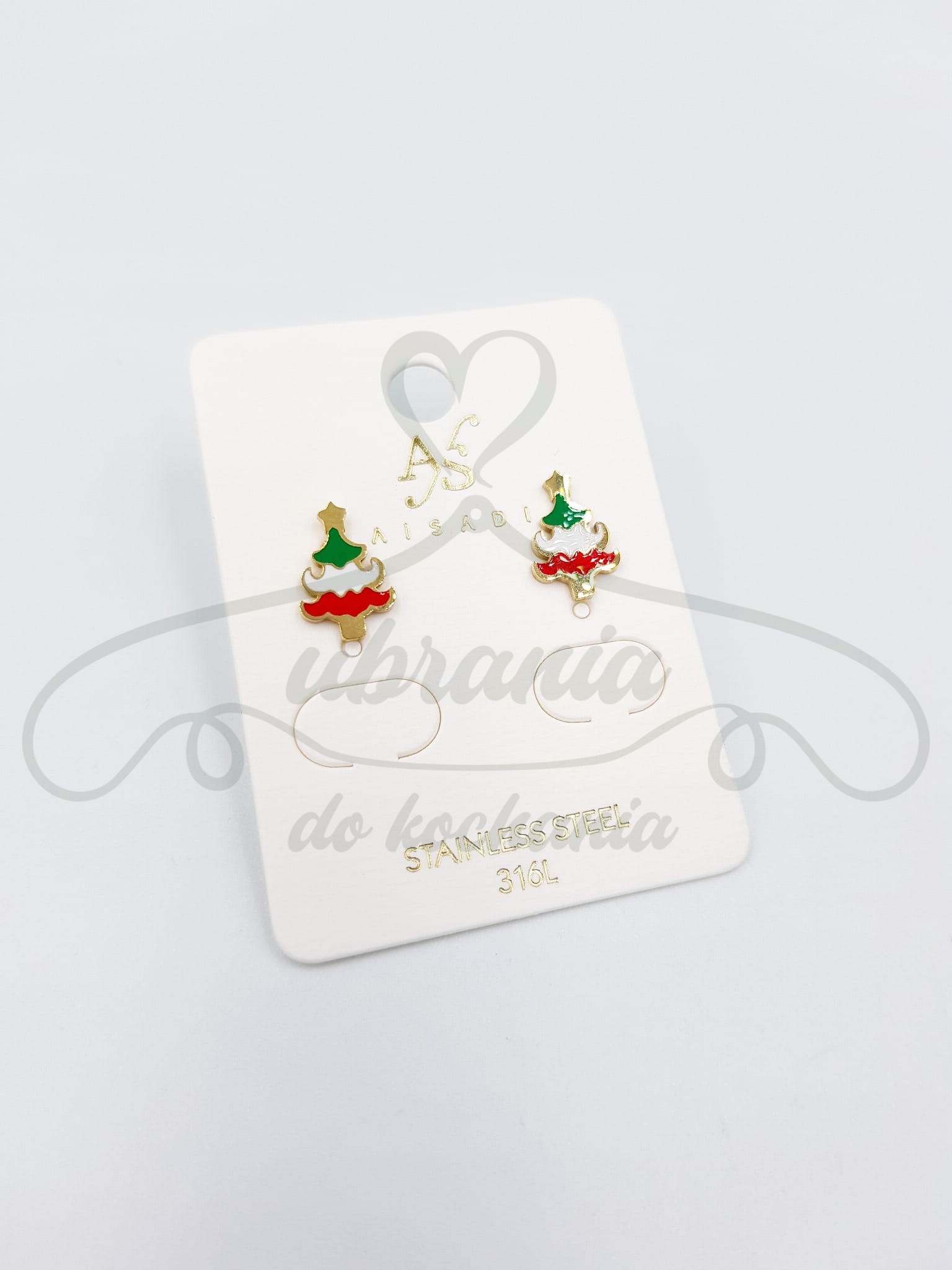 Kolczyki w kolorze złotym w kształcie kolorowych choinek . Model wykonany ze stali szlachetnej 316L.