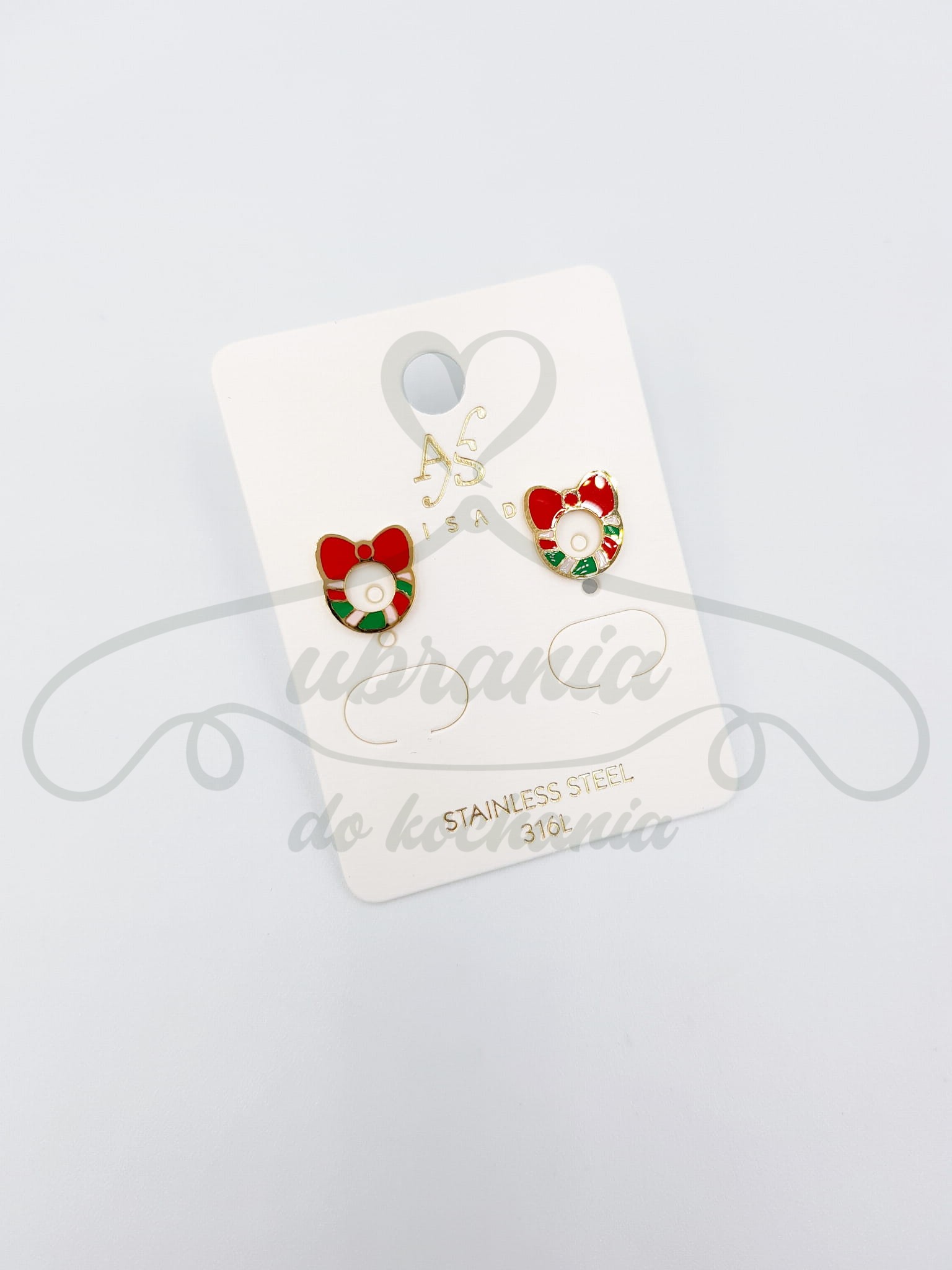 Kolczyki w kolorze złotym w kształcie kolorowego, świątecznego wianka. Wykonane ze stali szlachetnej i będące idealnym dodatkiem do świątecznej stylizacji.
