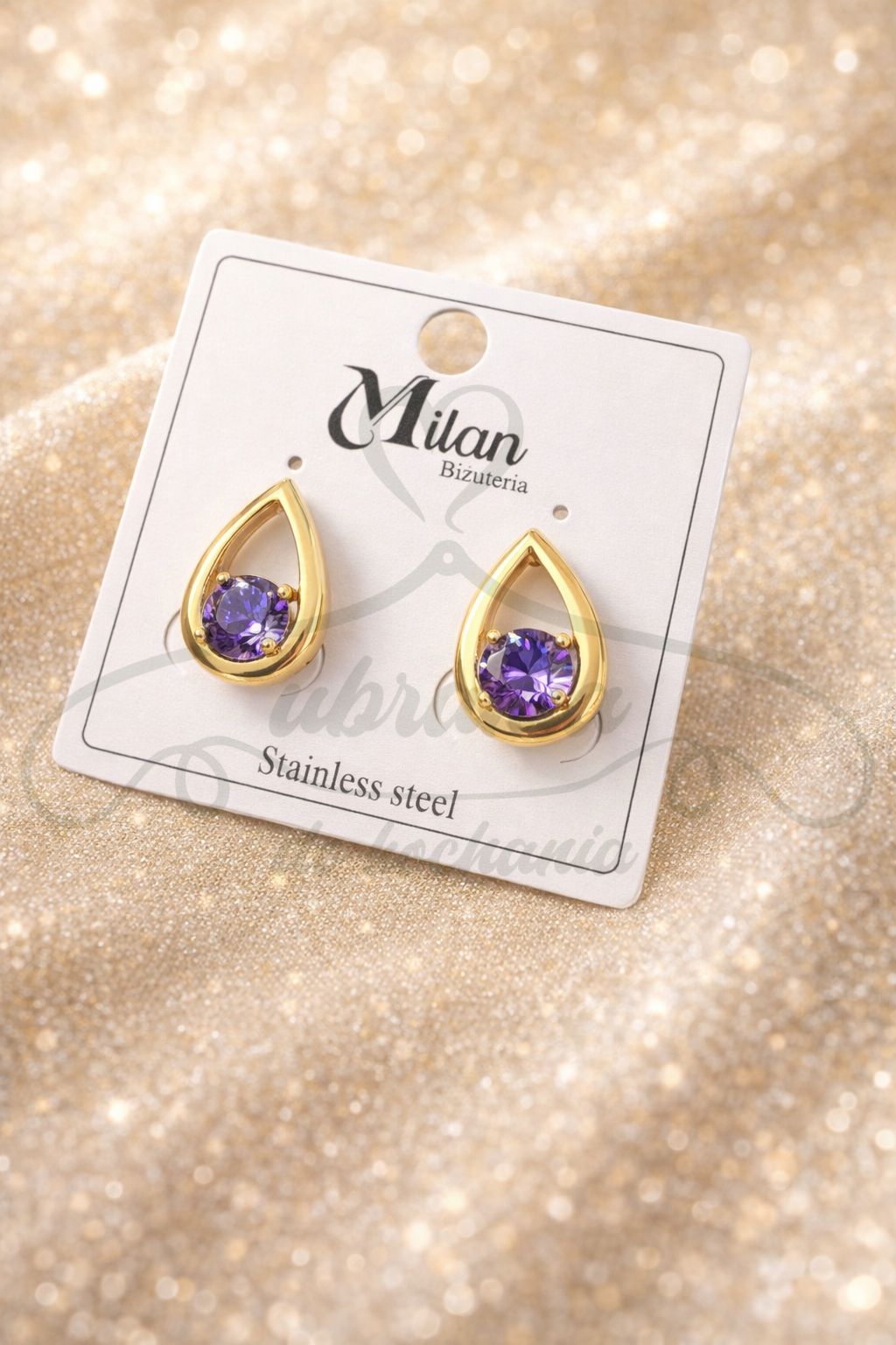 Bardzo efektowny model, który od razu przyciąga spojrzenia. Klasyczna złota łezka i pięknie błyszcząca, fioletowa cyrkonia tworzą razem coś naprawdę eleganckiego, ale z charakterem. To kolczyki, które świetnie ożywiają stylizację i robią taki biżuteryjny akcent, który od razu widać