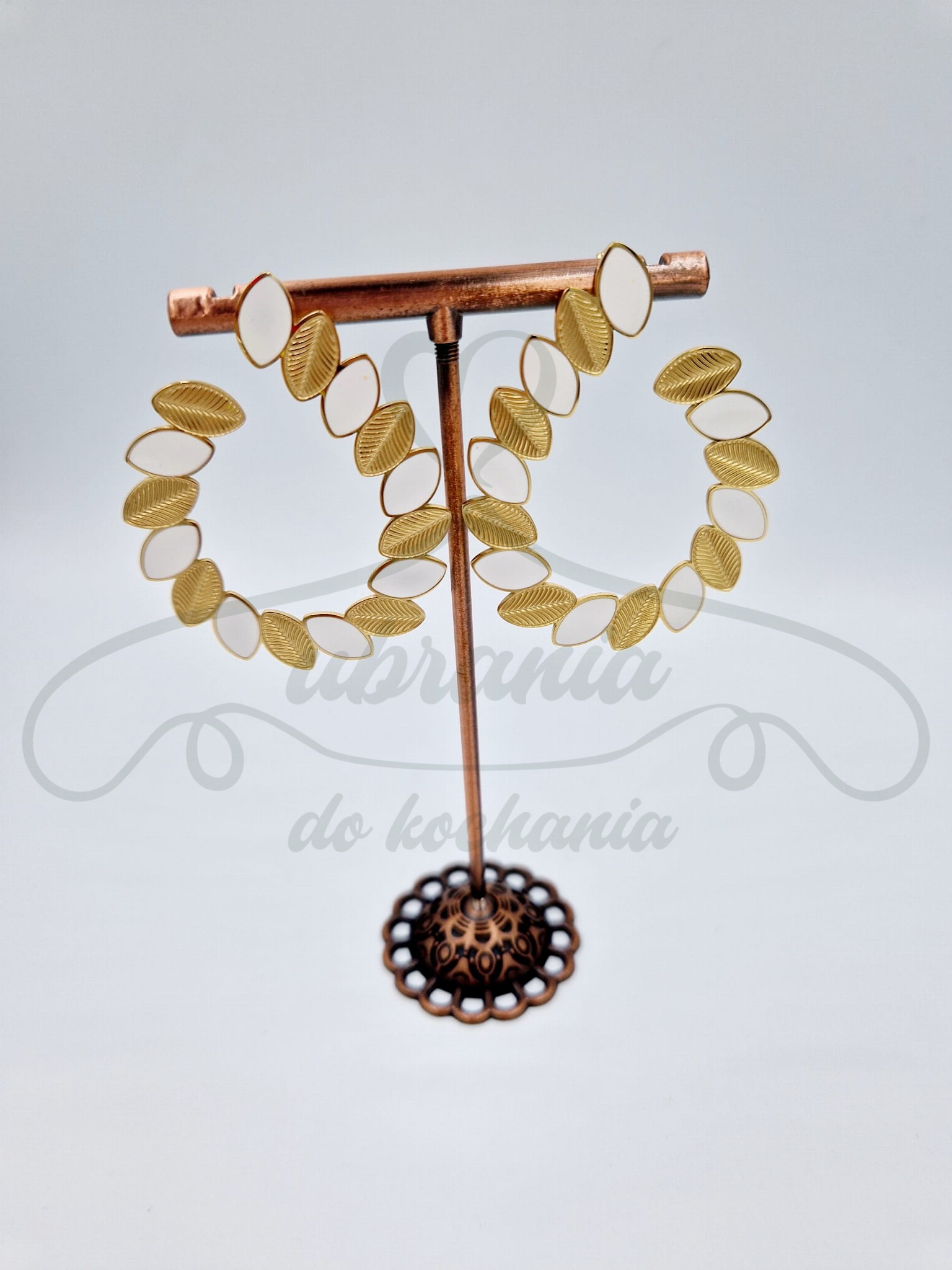 Kolczyki listki biało-złote