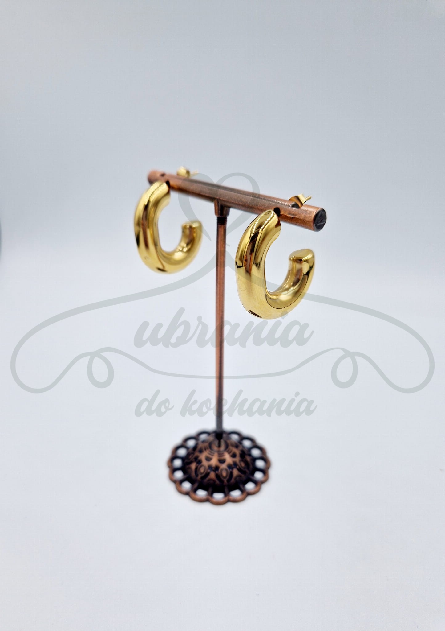 Kolczyki grubsze, owalne, wyjątkowo i elegancko prezentujące się na uszach. Model wykonany ze stali szlachetnej. Kobiece, stylowe i odrobinę przypominające kształt elipsy