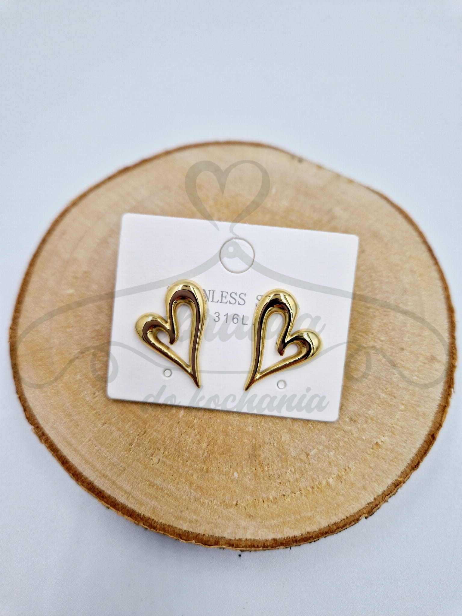 Kolczyki w kolorze złotym puste serduszka. Model wykonany ze stali szlachetnej. Wspaniałe dla wielbicielek serduszek! Model obok którego nie można przejść obojętnie.