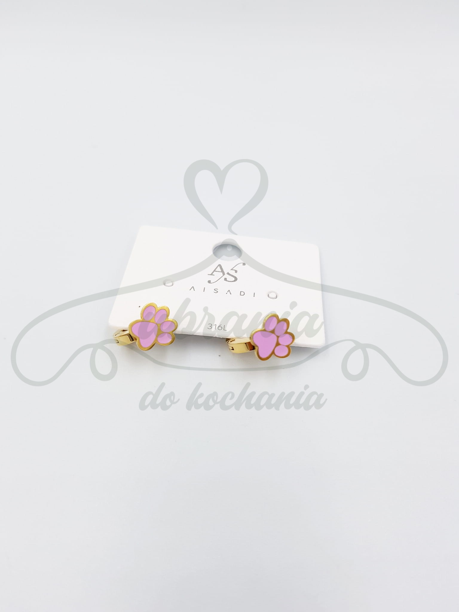 Kolczyki różowe łapki. Idealne dla miłośników zwierząt. Wykonane ze stali szlachetnej w kolorze złotym.