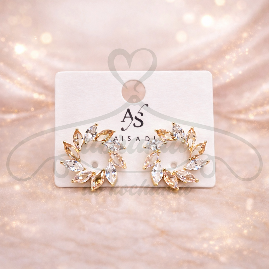 Zachwycające kolczyki w kształcie delikatnego słoneczka z listków, wysadzane lśniącymi cyrkoniami, to klasyczna biżuteria w luksusowym wydaniu. Wykonane ze stali szlachetnej – idealne do sukienek, koszul i wieczorowych kreacji. Kobiece, błyszczące, ponadczasowe