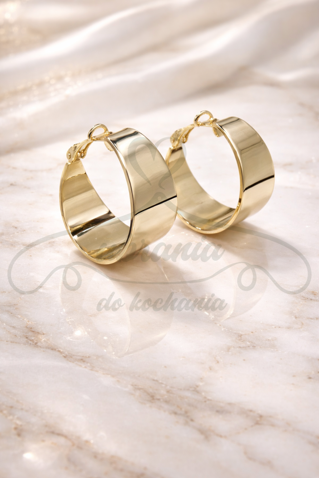 Kolczyki w kolorze złotym koła szerokie płaskie.Model wykonany ze stali szlachetnej. Kolczyki idealnie będą pasować do codziennych stylizacji oraz wieczorowych.