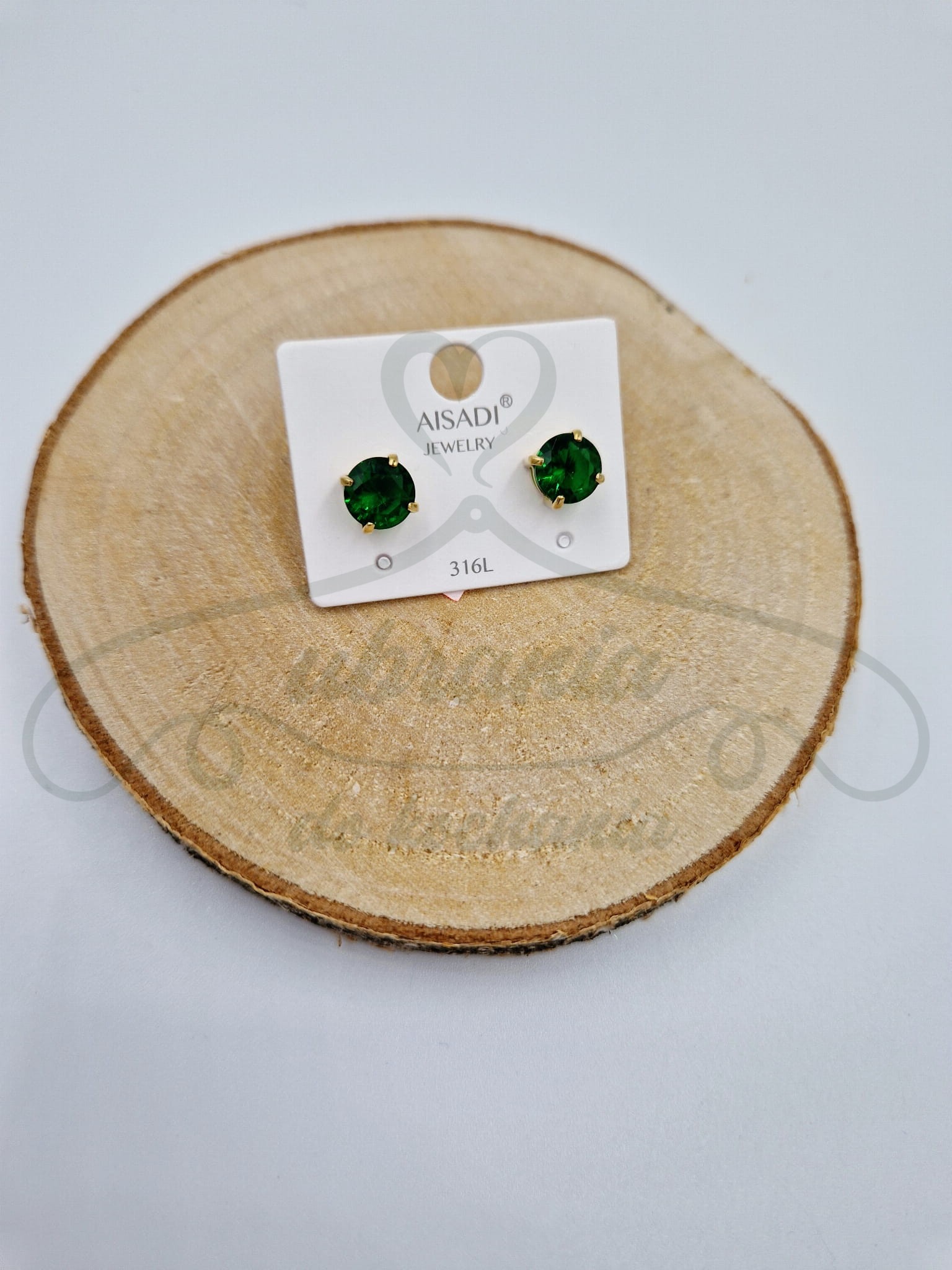 Kolczyki pasujące do codziennych stylizacji, kobiece i widoczne na uszach z zieloną cyrkonią. Bardzo ładnie się błyszczą. W całości wykonane ze stali szlachetnej.