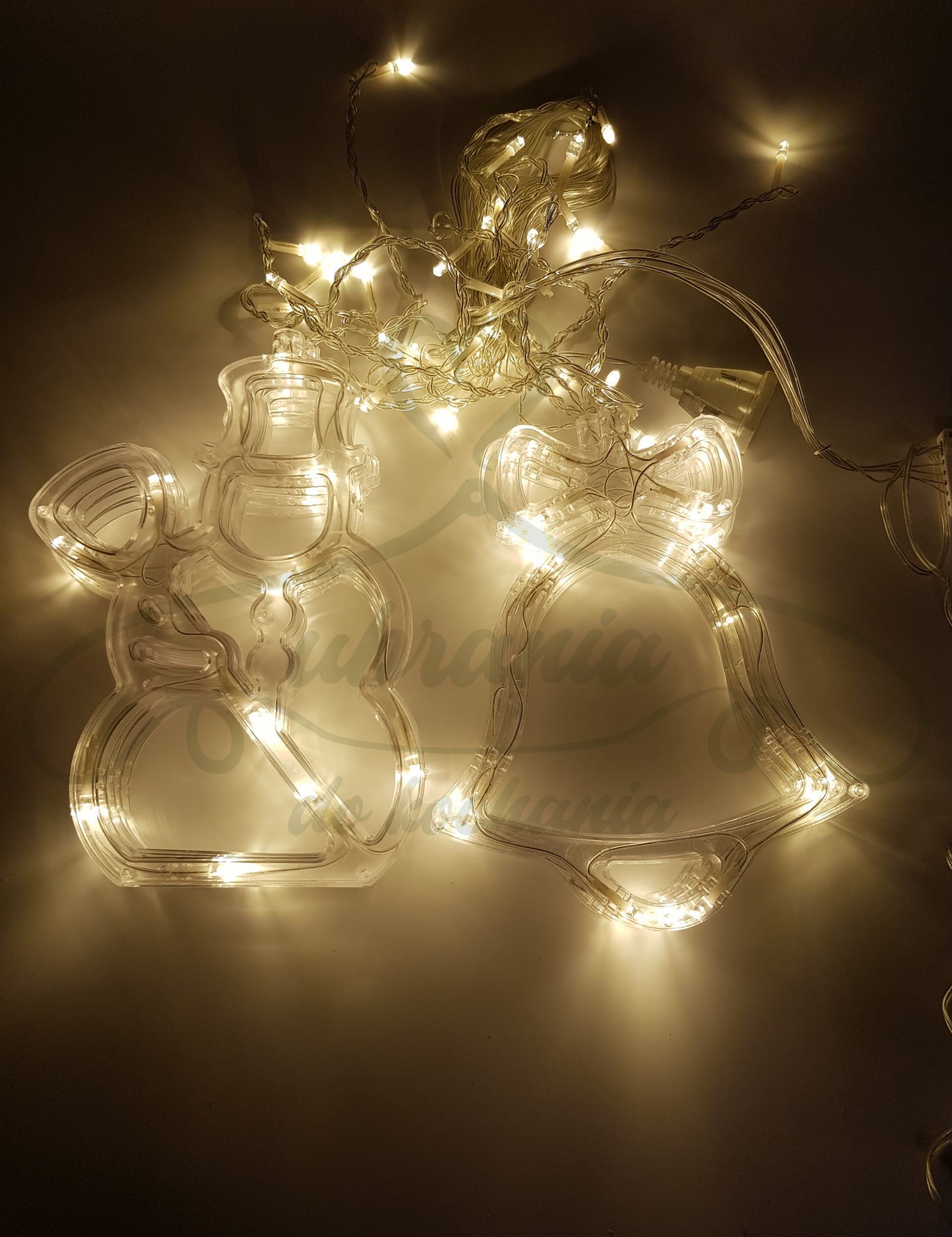 Kurtyna świetlna LED bałwan i dzwonek, CIEPŁY