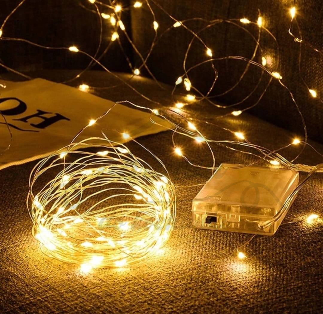 Lampki choinkowe LED na cienkim druciku zasilane na baterie. Idealnie sprawdzą się jako ozdoba świąteczna. Oświetlenie doskonale nadaje się do dekoracji ślubnych, pokoju dziecięcego, podświetlania wazonów itp. Można je zastosować na wiele sposobów.