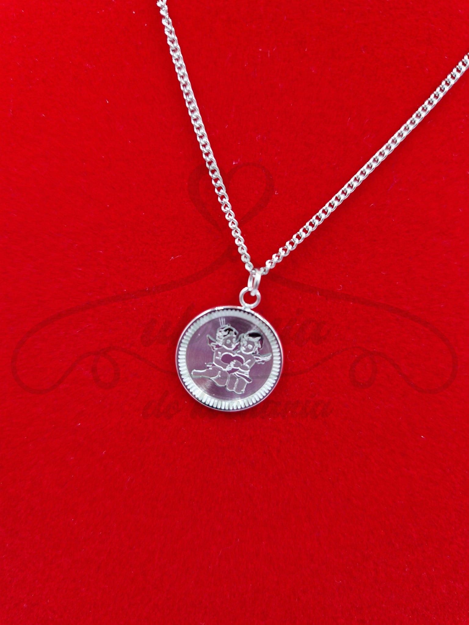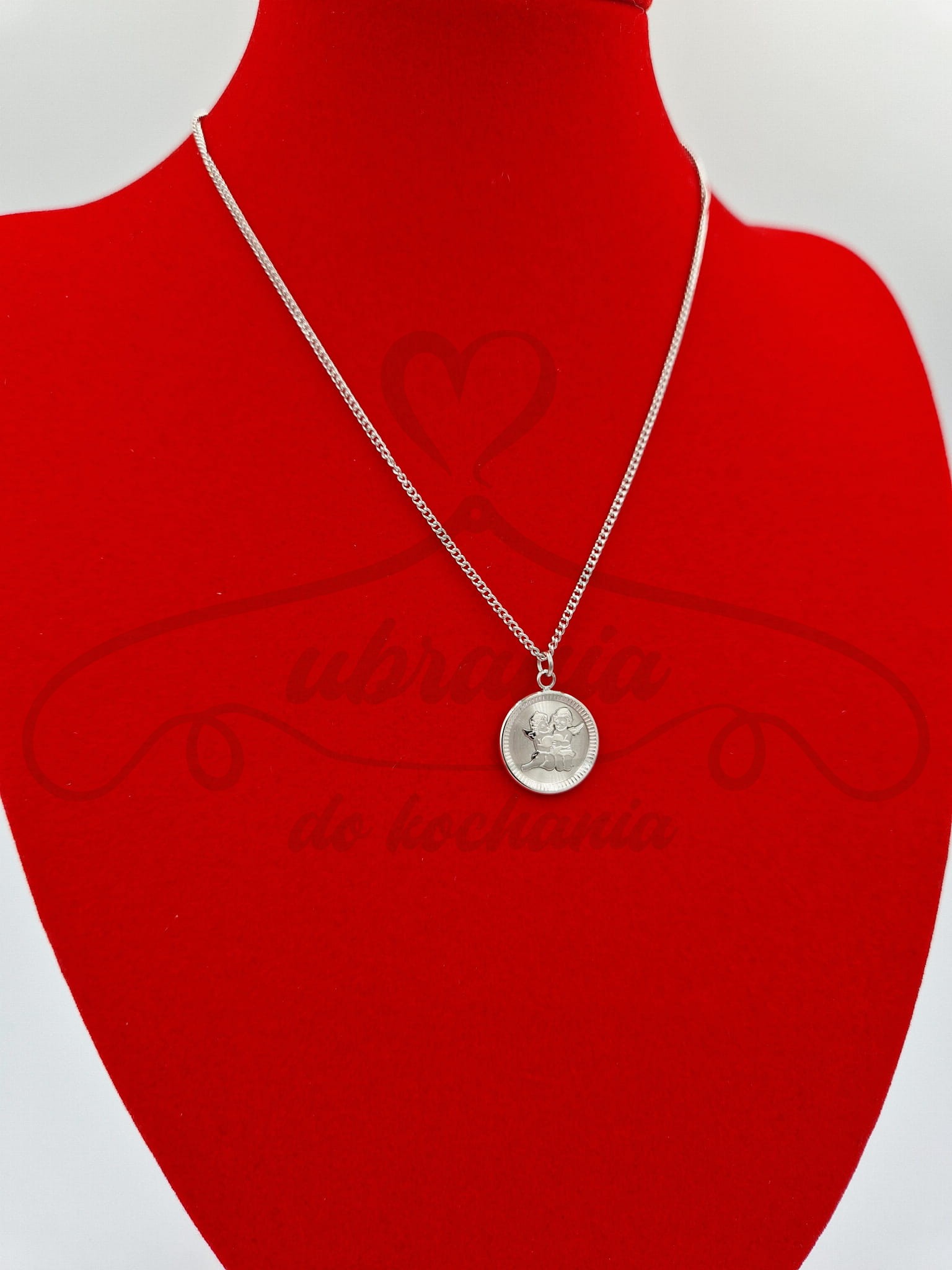 Naszyjnik w kolorze srebrnym z piękną zawieszką aniołkami. Niepowtarzalny model wykonany ze stali szlachetnej. Bardzo dobrze sprawdzi się także jako pomysł na prezent. Wykonany z wysokiej jakości stali szlachetnej.