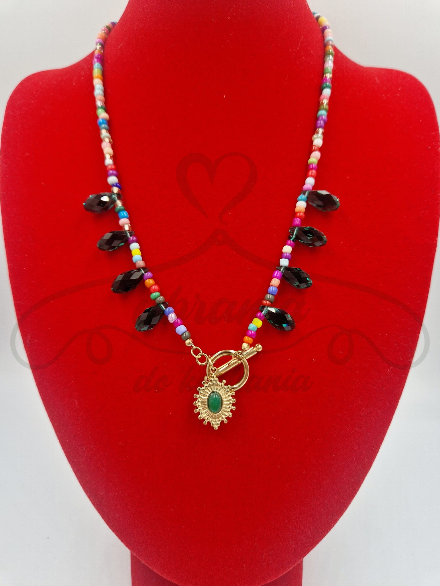 Naszyjnik damski w stylu boho, zdobiony kolorowymi koralikami i cyrkoniami. Złote elementy wykonane w całości z najwyższej jakości stali szlachetnej 316L. Ten model to idealne wykończenie letnich stylizacji, a także doskonały pomysł na prezent!