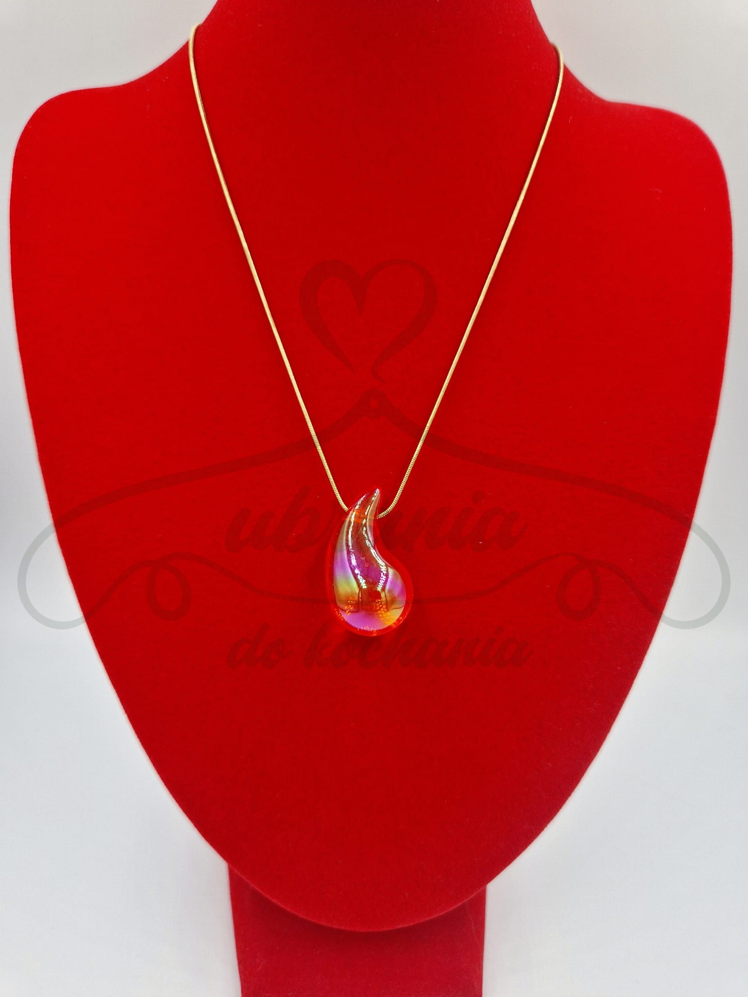 Naszyjnik delikatny, damski w kolorze złotym z zawieszką w kształcie kropli wykonanej z akrylu. Wykonany ze stali szlachetnej. Idealnie sprawdzi się do każdej codziennej stylizacji.
