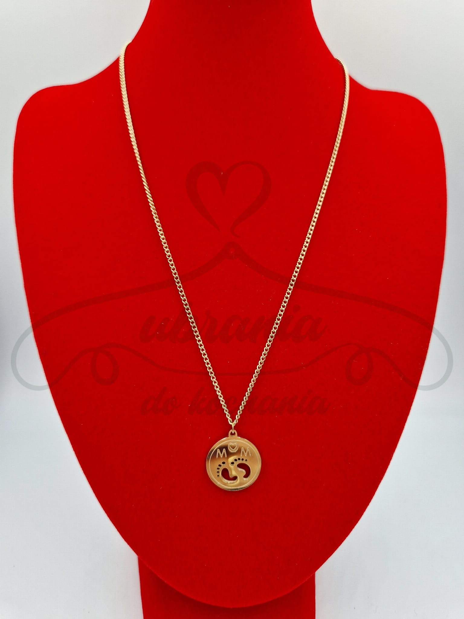 Naszyjnik mama z stópkami w kolorze złotym, wykonany ze stali chirurgicznej 316L