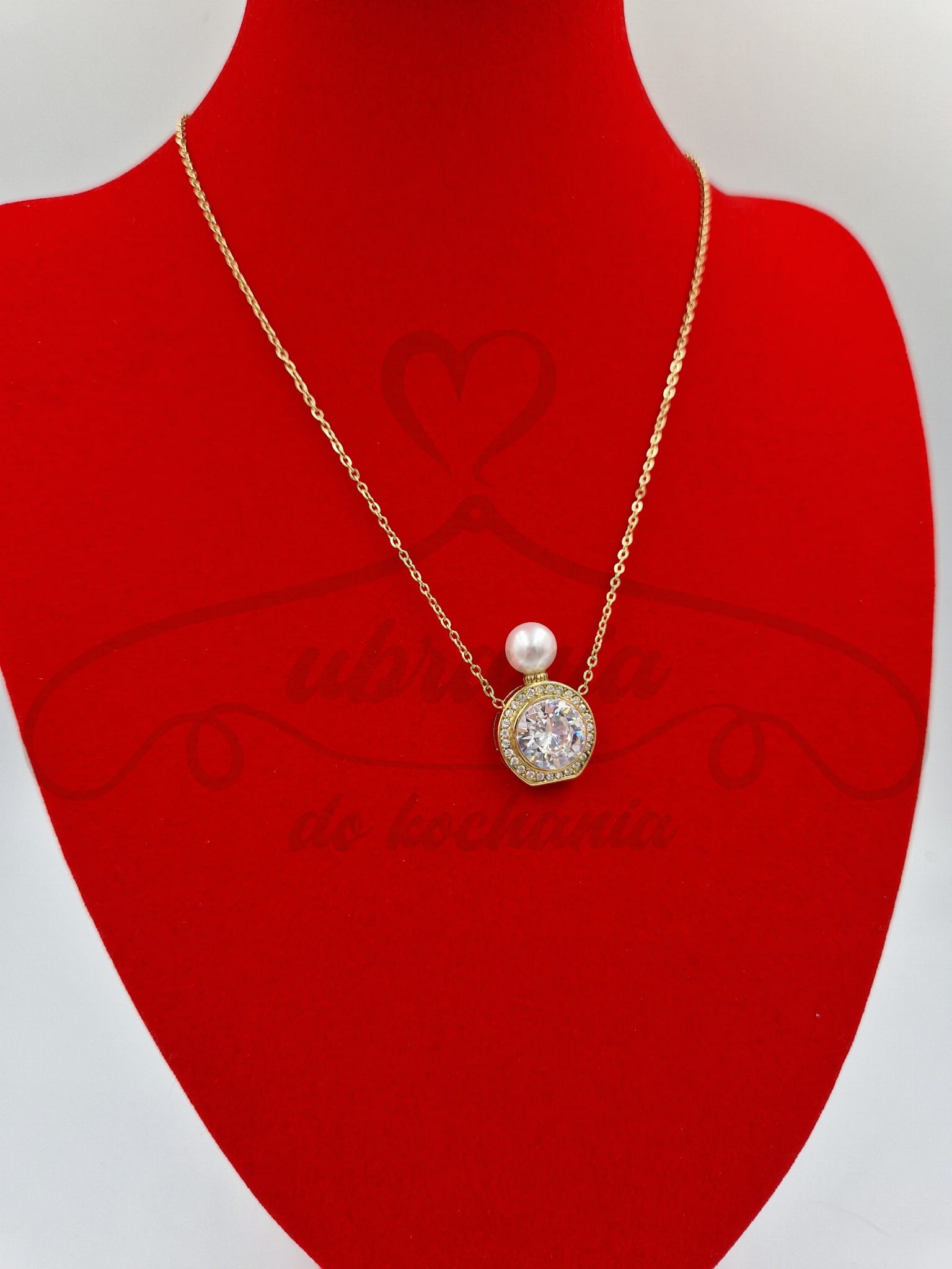 Naszyjnik w kolorze złotym z wyjątkową zawieszką w stylu butelki perfum z perłą i cyrkoniami. Wykonany ze stali chirurgicznej 316 L. Niespotykany, błyszczący wzór, który świetnie podkreśli eleganckie stylizacje. Prezentuje się naprawdę rewelacyjnie.