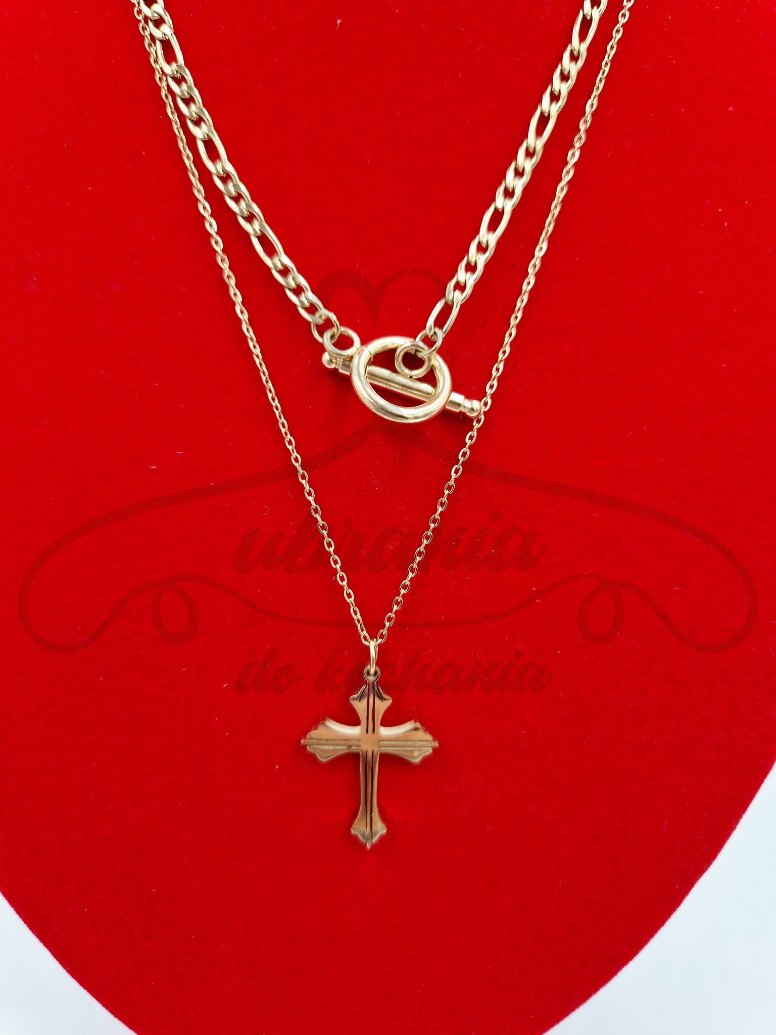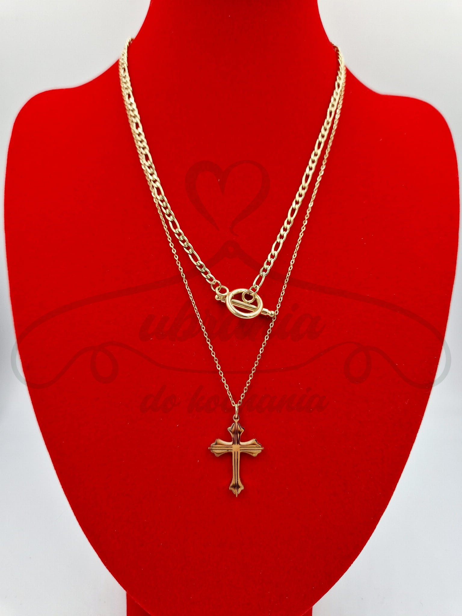 Zestaw dwóch naszyjników osobno zakładanych, jeden z zawieszką krzyżykiem a drugi łańcuszek jest gładki zapinany na togiel w stylu chokera. Łańcuszki można nosić razem lub osobno gdyż nie są ze sobą połączone. Bardzo ładny model pasujący do każdej stylizacji, wykonany ze stali szlachetnej.