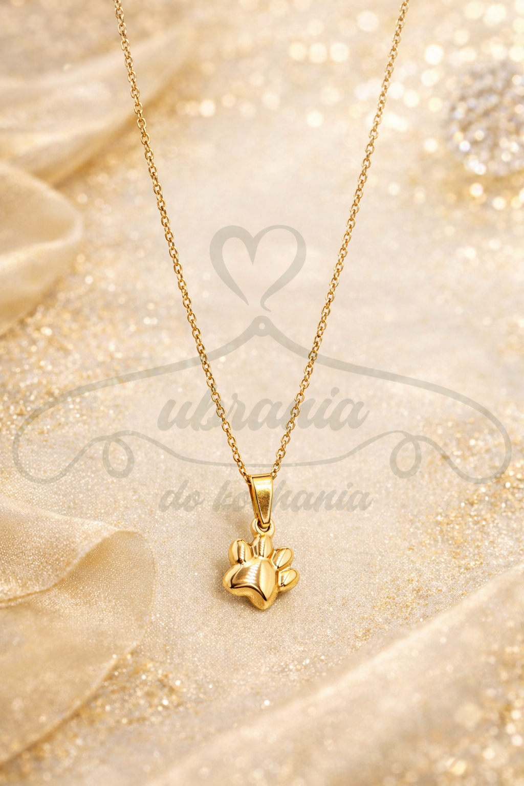 Delikatny naszyjnik ze stali szlachetnej w złotym kolorze z uroczą zawieszką w kształcie łapki. Subtelny i symboliczny dodatek, idealny dla miłośników zwierząt oraz osób, które lubią drobną, minimalistyczną biżuterię.