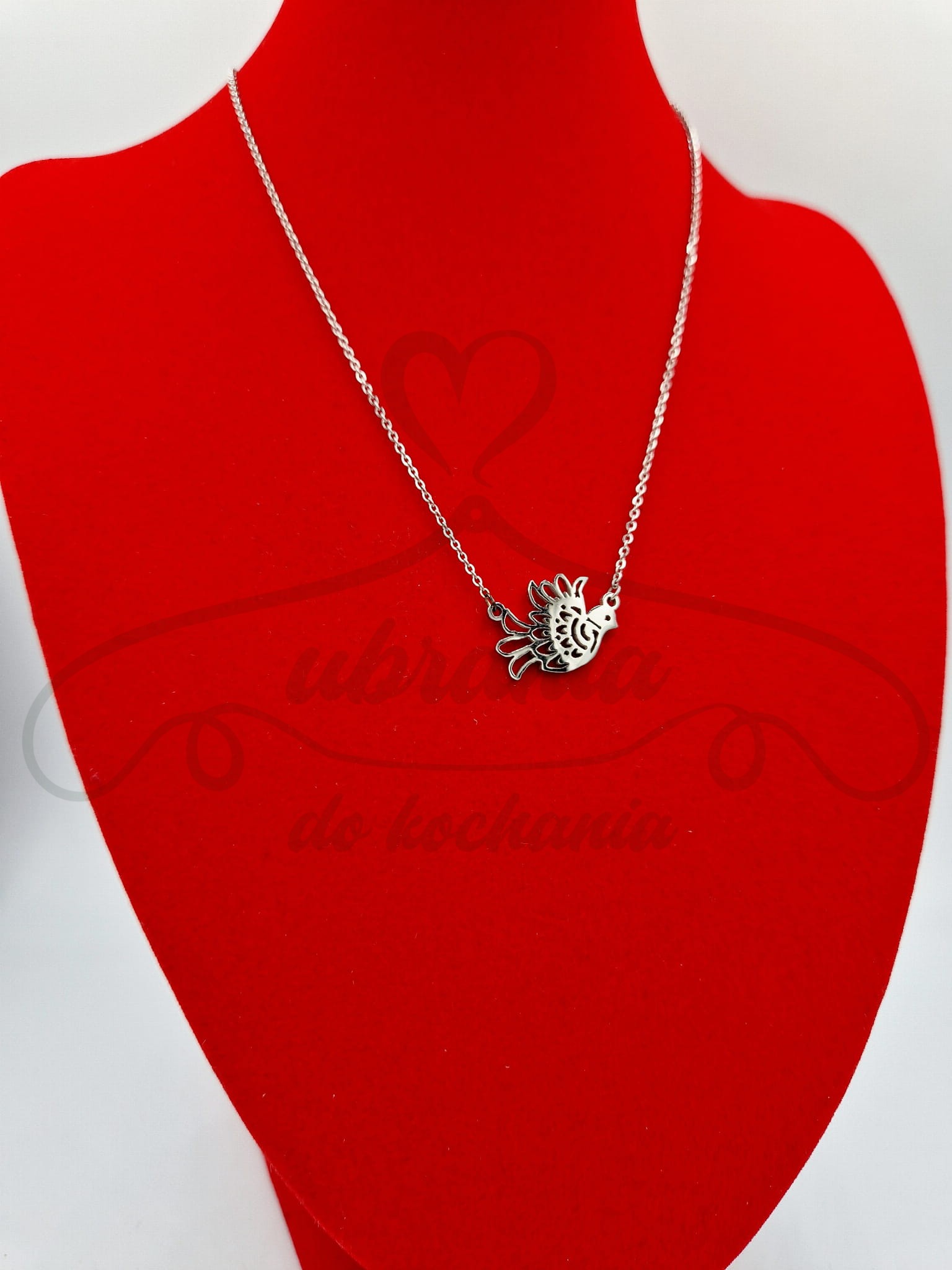 Naszyjnik celebrytka w kolorze srebrnym ptaszek, wykonany ze stali chirurgicznej 316L. Model pasujący do każdej stylizacji oraz dobry pomysł na prezent dla wielbicieli zwierząt