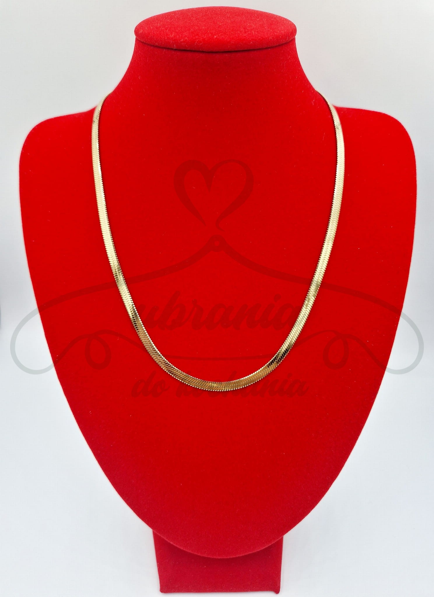 Klasyczny damski naszyjnik w kolorze złotym, płaska żmijka, wykonany ze stali szlachetnej. Naszyjnik z powodzeniem uzupełni każdą codzienną, kobiecą stylizację.