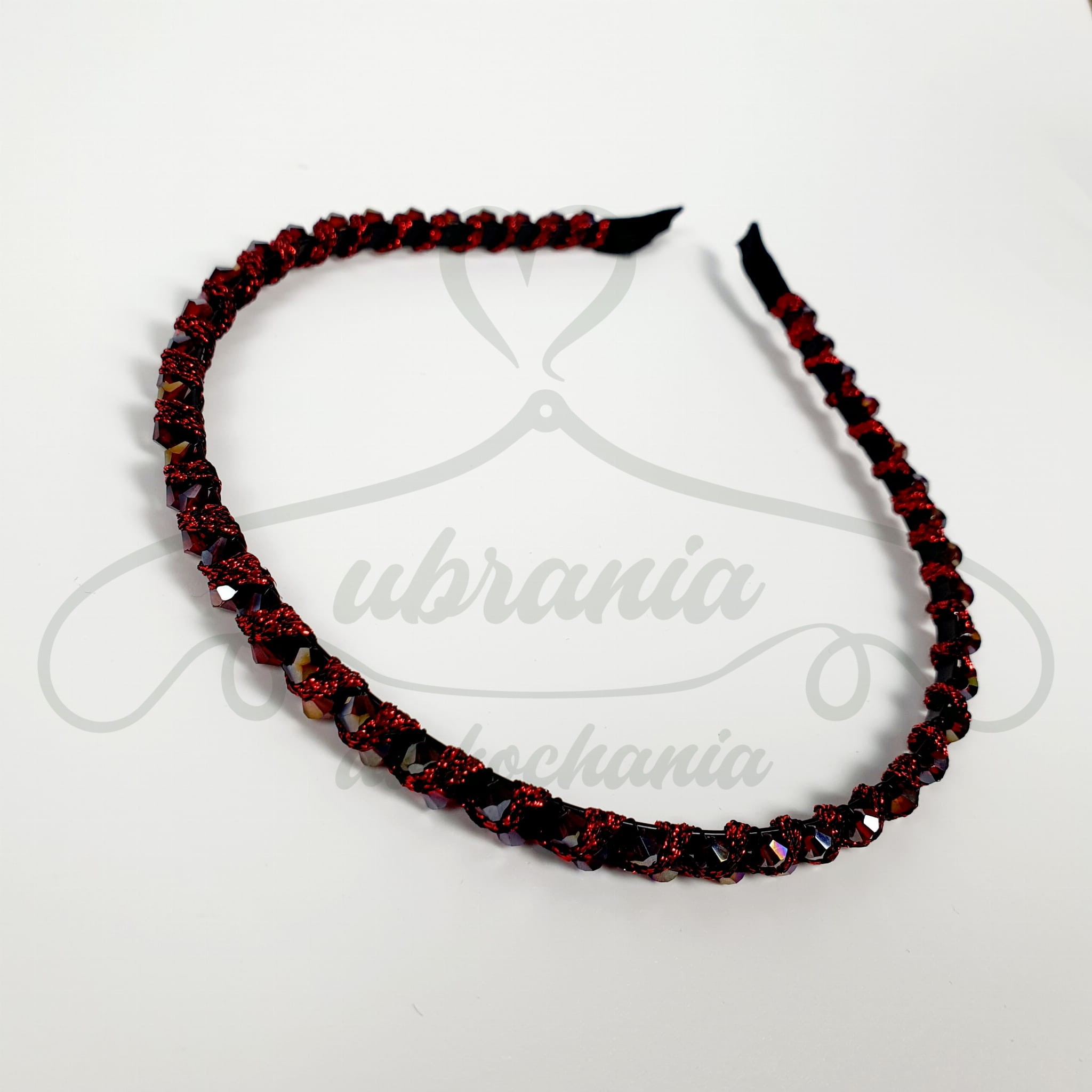 Opaska do włosów cała z czerwonymi koralikami i ozdobną nitką. Idealnie podkreśli twoją fryzurę i doda jej uroku. Posiada ponadczasowy wygląd jest to wspaniały dodatek do włosów. Opaska nie posiada ząbków.