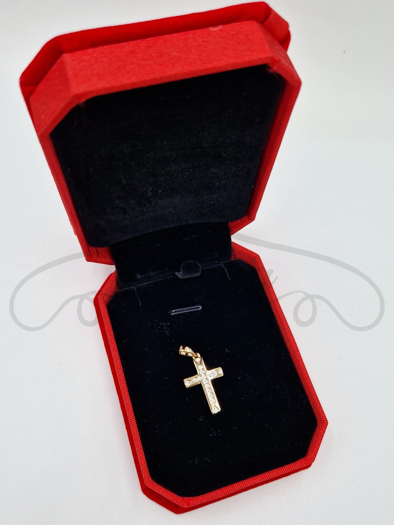 Niezwykła zawieszka w kształcie krzyża, przyozdobiona niewielkimi cyrkoniami, to dobry pomysł na dopełnienie ubioru dla osób, które cenią sobie symbolikę chrześcijańską lub są fankami stylu gotyckiego. Polecamy także jako dodatek do łańcuszków dziecięcych.