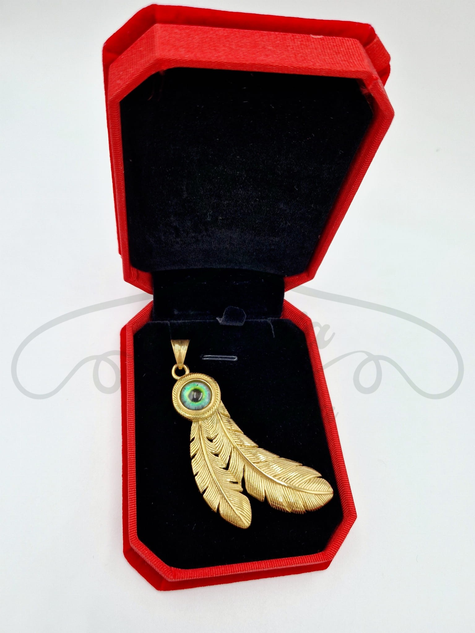 Etniczna zawieszka w kształcie skrzydeł, ozdobiona szkiełkiem, imitującym zielone oko o głębokim spojrzeniu, to niezwykła ozdoba, która przywodzi na myśl opowieści o rdzennych Indianach i ich niezwykłych ozdobach. Ze względu na ciężar zawieszki, polecamy nosić ją na grubym łańcuszku.